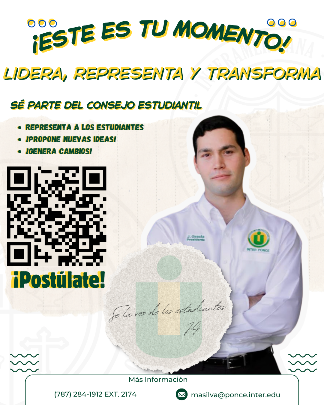 Atrévete a dar el paso y sé parte del cambio postulándote al Consejo de Estudiantes 2026-2027. Están abiertas las nominaciones para los puestos de presidente, vicepresidente, tesorero, secretario y vocales.
