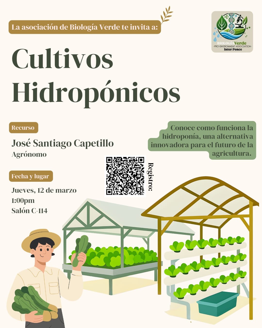 La Asociación de Estudiantes de Biología Verde le invita a conocer sobre Cultivos Hidropónicos, una alternativa innovadora para el futuro de la Agricultura.